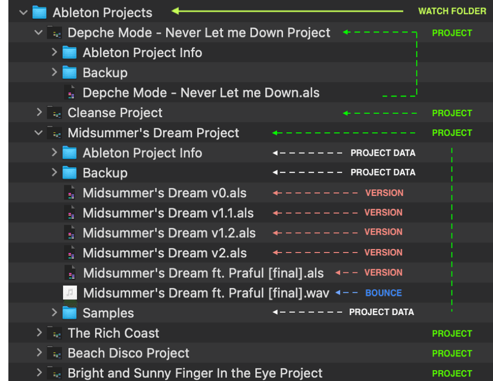 Most Common Issue: You’re watching a folder of individual .als files instead of proper Ableton project folders.